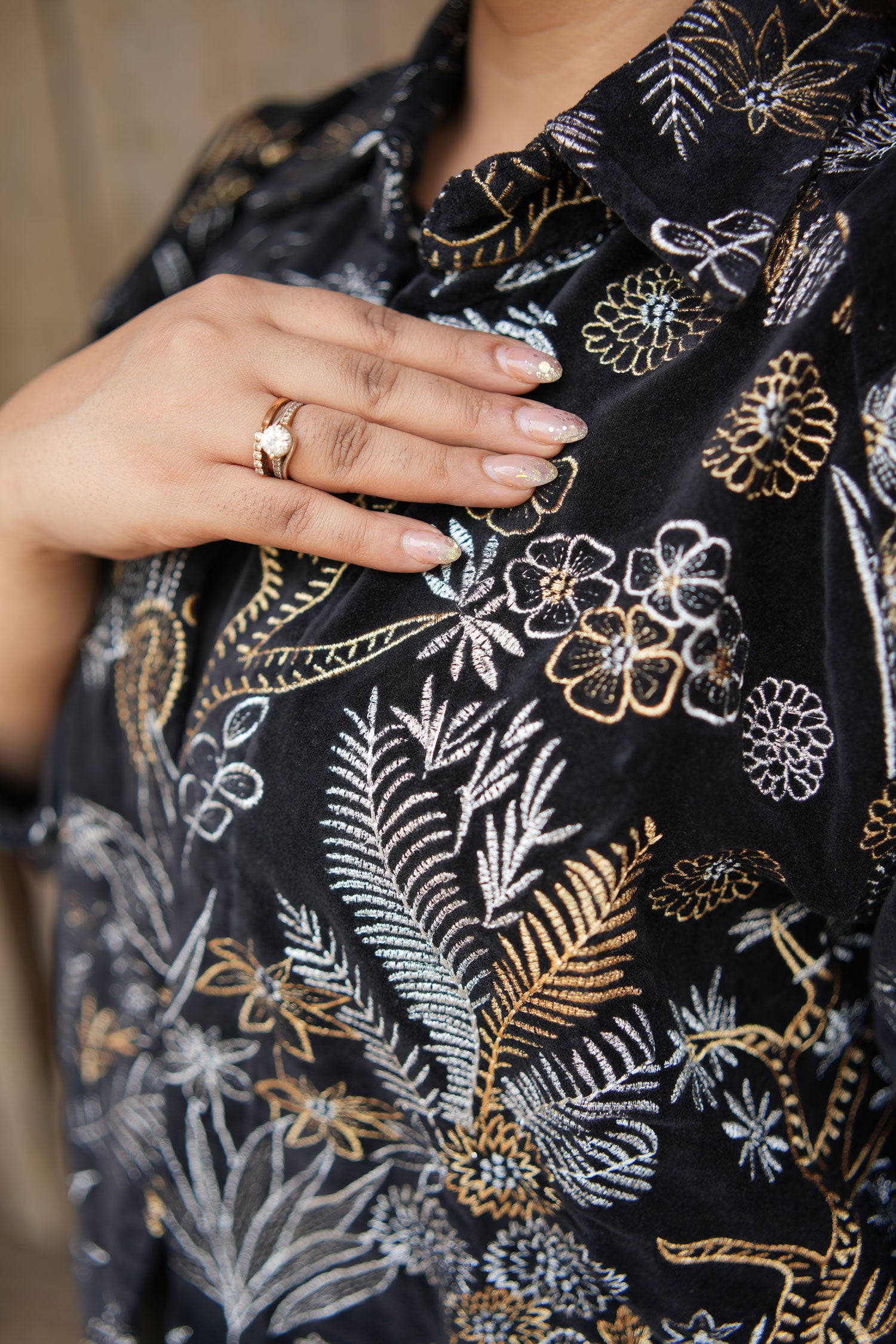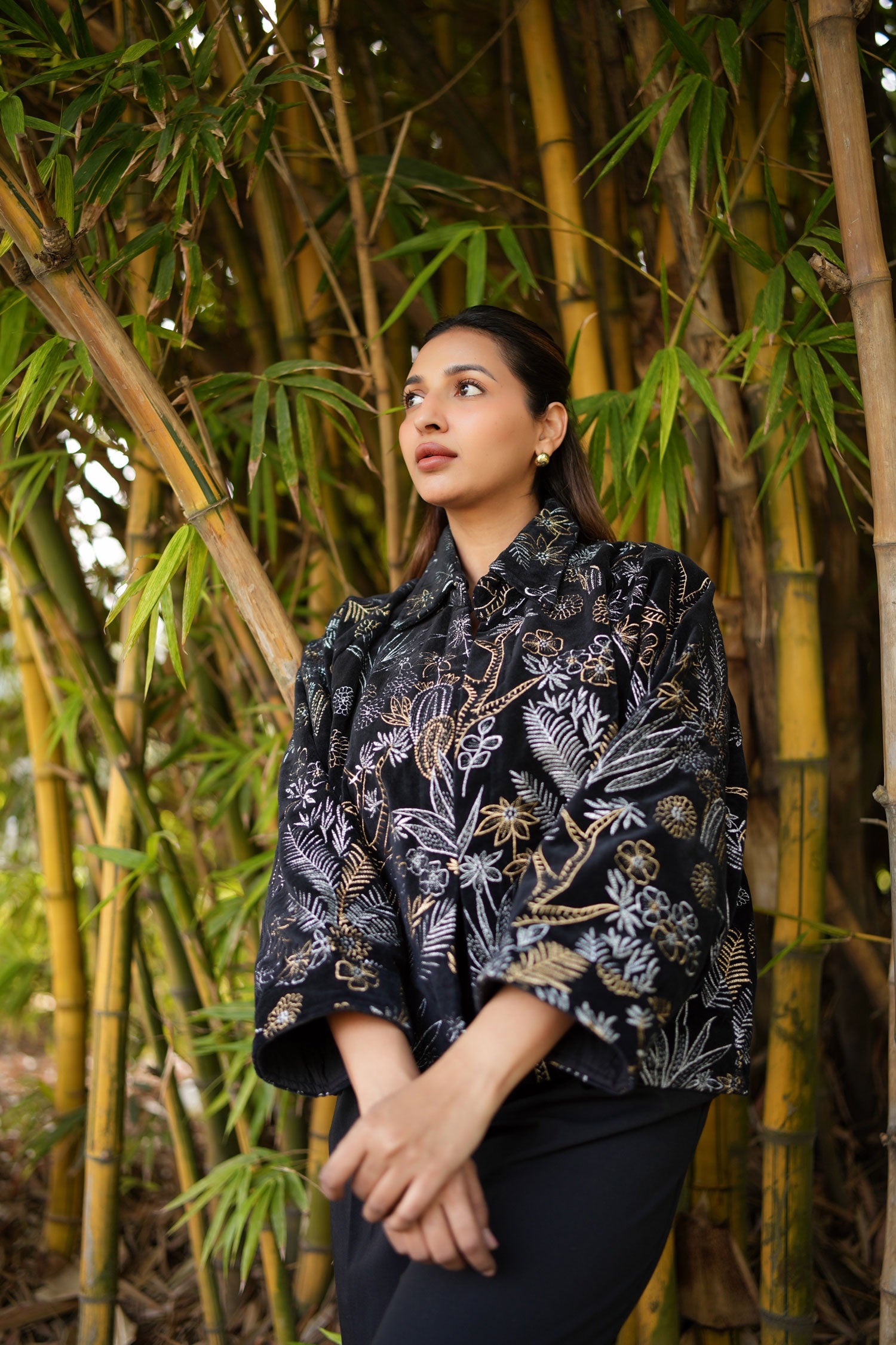 Where Vintage Charm Meets Contemporary Elegance- this VELVET ZARI HAND EMBROIDERED JACKET is crafted to be a TIMELESS KEEPSAKE.